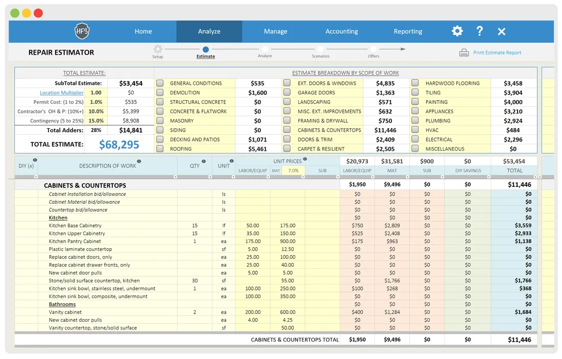 - Flip Estimation - Accurately estimate repair costs w/ our database of over 500 common repairs & unit prices, so you don't underestimate!