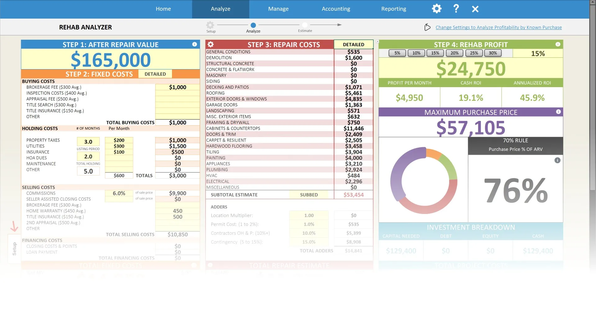 - Flip Analysis - Analyze the Max Purchase Price you should offer, so you don't overpay!